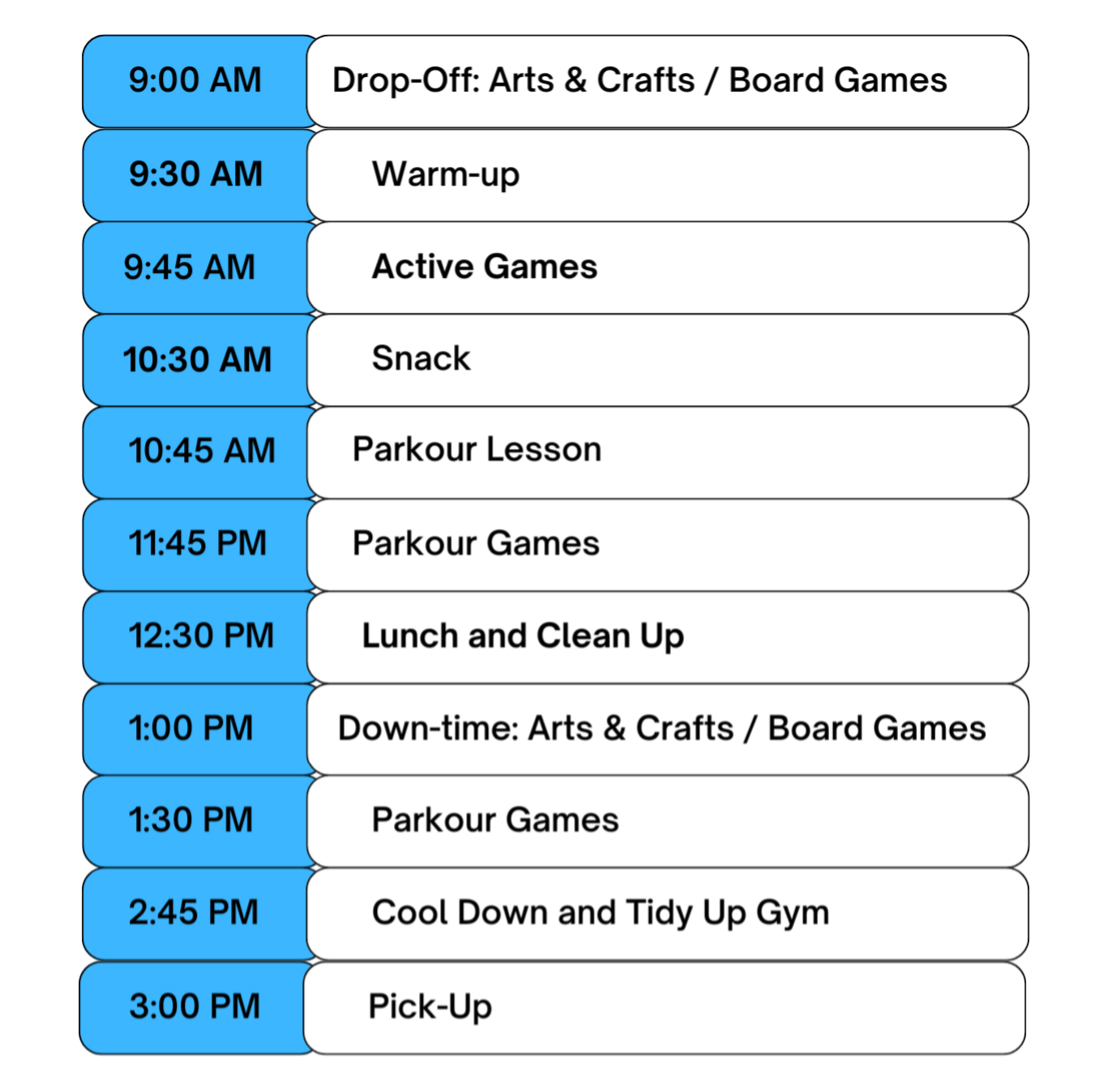 My son enjoys Parkour so much! He’s been practicing a few months now and I have seen an improvement in his overall coordination and strength. Not only does he learn how to flip and climb on and off various obstacles. The coaches add a social element to the opening and closing of each class where students share a bit about themselves and shake hands once class concludes.